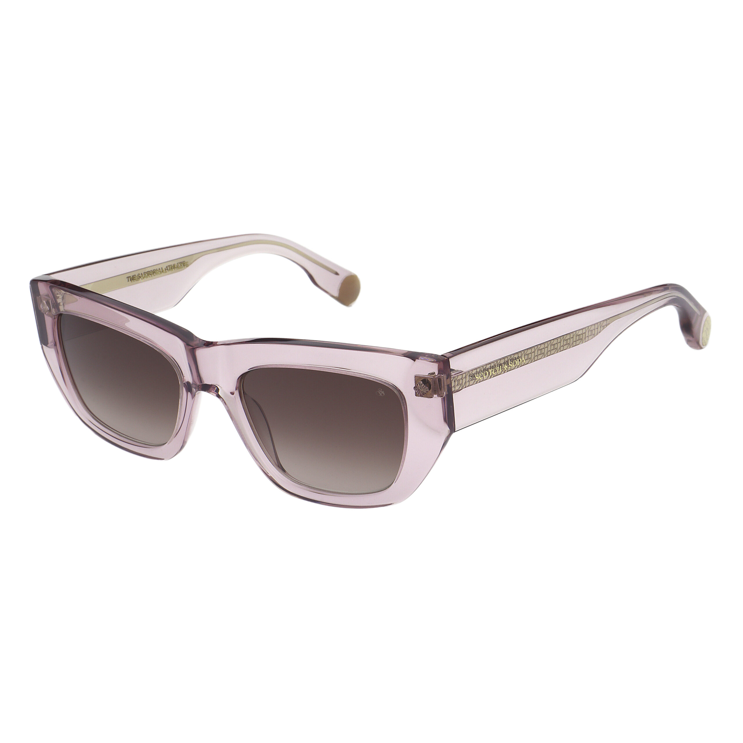 SS7049 in Gloss Crystal Blush coloured sustainable acetate is a sleek style in ‘The Sartorial Athlete’ design story. The rectangular chunky acetate shape features a bespoke engraved core wire and sunburst inspired front pins. The Scotch & Soda ampersand sits proudly outside of the temple tips and finalised with ‘The Sartorial Athlete’ written on the inside.