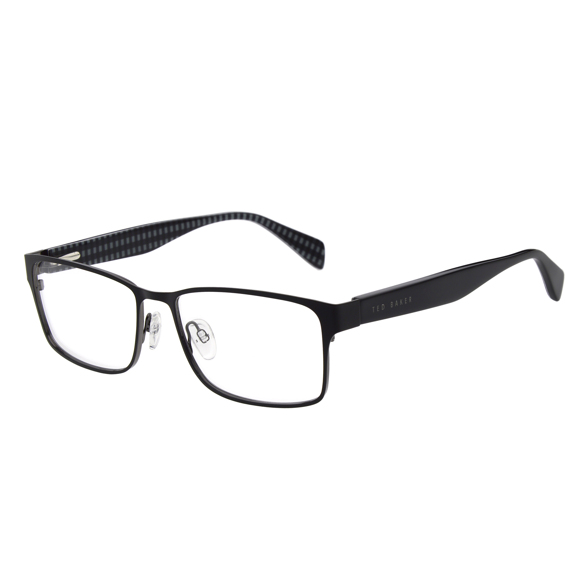 FISHER is an everyday classic in a men's optical wardrobe. The wearable metal frame features a checked print on the inside temple, adding a bit of subtle flair. The frame is finished with classic Ted Baker branding.